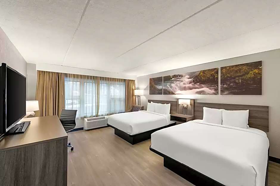 This room features two queen beds, a flat-screen TV, hair dryer, microwave, mini-fridge, iron, and ironing board.